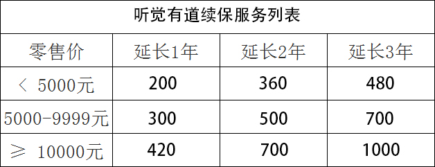 所以,根據用戶朋友的需求,聽覺有道提供付費延長保修期的服務。