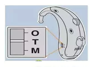 1)直接在助聽器機身上選擇:適用于一些安裝了“O、T、M”的助聽器;