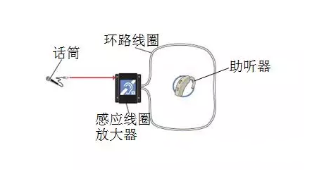 感應線圈系統(induction loop system)可將音頻信號轉換為電流,進而產生磁場以供助聽器中的電感線圈識別。