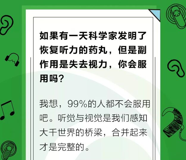 2019年3月29日聽覺有道推出一個(gè)全新的欄目內(nèi)容<br /> 一本正經(jīng)地奇思妙想<br /></span><p><span style="font-size:16px;"> 內(nèi)容全靠一張圖:</span></p><p style="text-align: center;"><span style="font-size:16px;"><img src="/upfiles/201903290834583126.jpg" alt="" /><br /></span></p><span style="font-size:16px;"> 言語雖然不多僅僅三兩句<br /> 大家隨便看看就行了<br /> 可我們一定得往心里去啊<br /> 嚴(yán)肅點(diǎn):愛耳君估計(jì),99%的人心里都在想,誰會那么傻會做“拆東墻補(bǔ)西墻”的事情呢。<br /> 在現(xiàn)實(shí)中,很多恢復(fù)聽力藥物的研究就尚處于這個(gè)階段,我們在新聞上看到科學(xué)家已經(jīng)可以讓小老鼠通過注射藥物等方式恢復(fù)聽力,然而我們沒有看到的是,這類方式目前還不能控制其極大的副作用,這種副作用可不僅僅是失明那么簡單,有可能還會丟掉性命。<a href="http://www.letianwh.cn/listDetail.aspx?id=102818" target="_blank"><strong><span style="color:#3333ff;">五個(gè)不容易被察覺的耳部疾病</span></strong></a><br /></span><p><span style="font-size:16px;"> 誠然,科研的每一分進(jìn)步都難得可貴,未來會是怎樣的,愛耳君不知道。愛耳君希望有朝一日科學(xué)家能真正發(fā)明出一款“沒有副作用”的藥丸,讓全天下聽障人士都能恢復(fù)聽力。但我們也需正視現(xiàn)實(shí)把握當(dāng)下,早發(fā)現(xiàn)、早干預(yù)、早治療。</span></p><span style="font-size:16px;"> 相關(guān)推薦閱讀:<a href="http://www.letianwh.cn/listDetail.aspx?id=102841" target="_blank"><strong><span style="color:#3333ff;">如何正確應(yīng)對聽力損失?聽力保健的8大誤區(qū)</span></strong></a><br /><br /><br /> 聽覺有道助聽器價(jià)格:http://www.letianwh.cn/products.html<br /><br /> 發(fā)布于2019年3月29日 星期五<br /><br /> 上午8:36分</span>" />