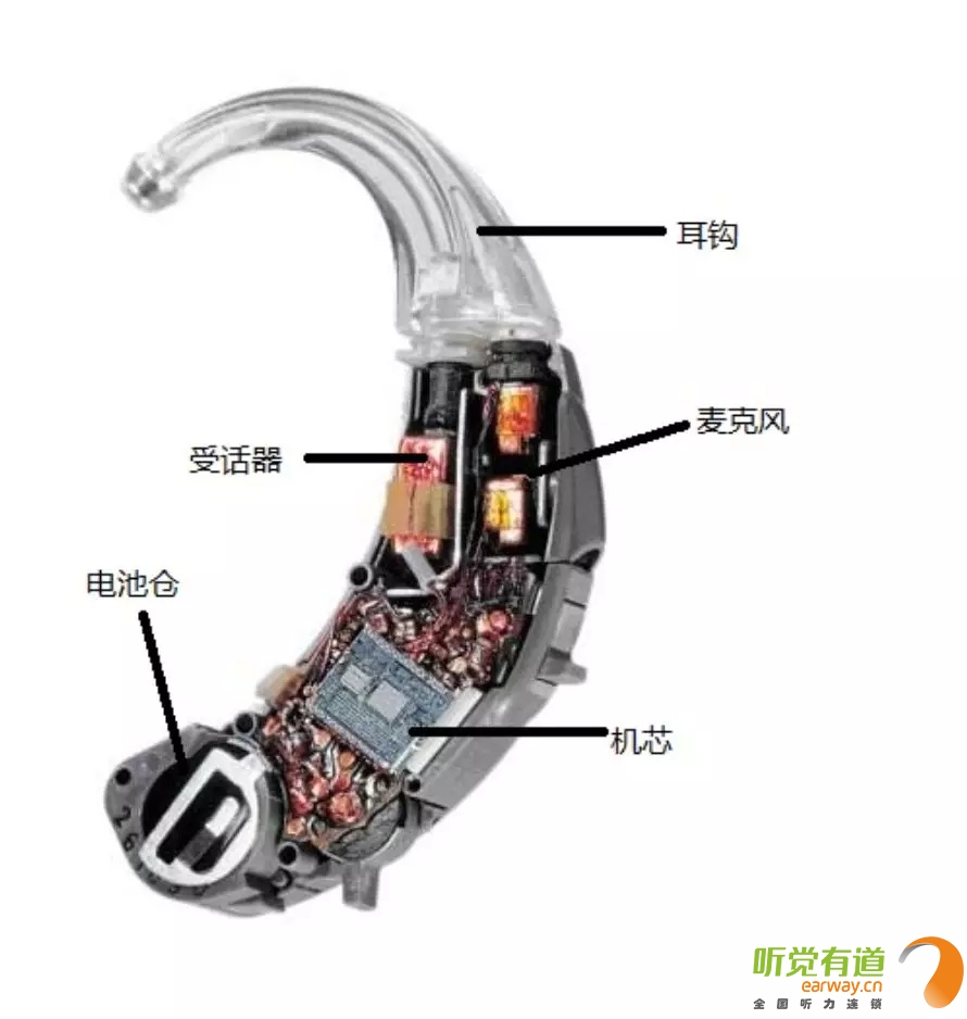 <span style="font-size:16px;"> 在助聽器發展過程中,出現過很多種助聽器,比如:盒式、眼鏡式、耳背式、耳甲腔式、耳道式、深耳道式等定制式助聽器。如今盒式助聽器、眼鏡式助聽器等幾乎已退出歷史舞臺,現在常見的助聽器有耳背式助聽器、定制式助聽器和RIE受話器外置式助聽器。</span></p><p style="text-align: center;"><span style="font-size:16px;"><img src="/upfiles/201808160127045435.jpg" width="640" alt="" /><br /></span></p><p><span style="font-size:16px;"> 接下來,我們將以耳背式助聽器為例,向您介紹助聽器的外部配件及內部構造!</span></p><p><span style="font-size:16px;"> 1、機身內部構造</span></p><p style="text-align: center;"><span style="font-size:16px;"><img src="/upfiles/201808160127276133.jpg" width="640" alt="" /><br /></span></p><p><span style="font-size:16px;"> 麥克風:獲取聲音并將聲音信號轉化為電信號。</span></p><p><span style="font-size:16px;"> 機芯:將電信號進行放大、處理,機芯包含放大器、音量調控電位器、微調電位器等。</span></p><p><span style="font-size:16px;"> 受話器:將電信號轉化為聲音信號,通過導聲管和耳模傳送給耳朵。耳背式助聽器和定制式助聽器的受話器都在機身內;RIE受話器外置式助聽器的受話器放置在耳道中。</span></p><p><span style="font-size:16px;"> 電池倉:用于安放電池來供電,使助聽器正常工作。</span></p><p><span style="font-size:16px;"> 2、電池</span></p><p><span style="font-size:16px;"> 電池放置于電池倉內,給予助聽器能量。市面上常見的助聽器電池分為4類:</span></p><p><span style="font-size:16px;"> A675:一般用于超大功率耳背式助聽器。</span></p><p><span style="font-size:16px;"> A13:一般用于標準耳背式或耳甲腔式助聽器。</span></p><p><span style="font-size:16px;"> A312:一般用于耳道式助聽器。</span></p><p><span style="font-size:16px;"> A10:一般用于深耳道式助聽器。</span></p><p><span style="font-size:16px;"> 電池大小:A675>A13>A312>A10,電池越大,儲存能量越多。</span></p><p><span style="font-size:16px;"></span></p><p> 更多詳情請登錄www.letianwh.cn。</p>" />