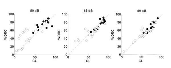 <span style="font-size:16px;"> 重度聽力損失是500Hz、1000Hz、2000Hz和4000Hz平均聽閾在61dB HL和80dB HL之間的聽力損失。重度聽損患者更趨向于:</span></p><p><span style="font-size:16px;"> 1、 聽力損失時間較久;</span></p><p><span style="font-size:16px;"> 2、 有助聽器佩戴史;</span></p><p><span style="font-size:16px;"> 3、 言語分辨率較低;</span></p><p><span style="font-size:16px;"> 4、 噪音環(huán)境中交流困難。</span></p><p><span style="font-size:16px;"> (一)重度聽力損失的特點</span></p><p><span style="font-size:16px;"> 60dB HL是單純外毛細胞損傷和內外毛細胞共同損傷的分界點,內毛細胞受損預示著重度聽力損失,這類患者的頻率選擇能力降低,在相關頻率范圍內難以分辨兩種聲音。這是噪聲環(huán)境下交流困難的主要原因。</span></p><p><span style="font-size:16px;"> 簡單來說,頻率選擇能力越低,自身降噪能力越差,噪聲下識別信號的能力也就越差。</span></p><p><span style="font-size:16px;"> (二)選擇合適的放大策略</span></p><p><span style="font-size:16px;"> 反饋抑制:這項技術在傳統(tǒng)方法的基礎上有更好的減少嘯叫的效果。</span></p><p><span style="font-size:16px;"> 指向性麥克風:有指向性功能的助聽器可以明顯提高信噪比(SNR)。現在自適應指向性麥克風廣泛地應用于大功率耳背機中。</span></p><p><span style="font-size:16px;"> 對于噪聲下言語交流困難的重度聽力損失患者,選配帶有指向性麥克風的助聽器效果顯著。</span></p><p><span style="font-size:16px;"> 聽力學家對重度聽損人士的指向性麥克風做過獲益度測試,發(fā)現平均言語識別能力提升了14%。</span></p><p><span style="font-size:16px;"> 重度聽損患者使用指向性功能時必須保證一定低頻增益,否則他們會感覺聲音不夠洪亮。</span></p><p><span style="font-size:16px;"> 寬動態(tài)范圍壓縮線路(WDRC):</span></p><p><span style="font-size:16px;"> 如下圖,白點是重度聽力損失患者的輔音識別得分,黑點是輕度至中度聽損患者的輔音識別得分;每位受試者佩戴四通道的耳背機,驗配采用NAL公式;測試言語聲強度分別為50dB SPL、65dB SPL和80dB SPL;比較WDRC和線性輸出壓縮限制(CL)兩種線路的得分。</span></p><center><span style="font-size:16px;"><img alt="" src="/upfiles/201809170201049787.png" width="600" height="240" /></span></center><p></p><p><span style="font-size:16px;"> 等分位于對角線附近代表兩種處理方式效果相似,得分位于對角線上方表示WDRC線路效果更好,而下方則表示CL線路效果更好。</span></p><p><span style="font-size:16px;"> 對重度聽損患者來說,輸入輕聲和中等聲時WDRC線路比CL線路效果更好;輸入響聲時兩種線路的區(qū)別并不大。所以使用WDRC線路可以獲得比CL線路更高的言語識別率。</span></p><p><span style="font-size:16px;"> 壓縮速度:壓縮越深可聽度越高,因為患者可以聽到更寬的聲音響度范圍。</span></p><p><span style="font-size:16px;"> 快反應壓縮(起效和釋放時間很短)可以降低元音(響度較大)增益并提高輔音(響度較小)增益,從而提高可聽度。</span></p><p><span style="font-size:16px;"> 所以理論上來講,對于重度聽損人士,使用多通道助聽器、低壓縮拐點、高壓縮比、音節(jié)壓縮,可以最大程度提高驗配效果。</span></p><p><span style="font-size:16px;"> 但壓縮越深就意味著有聲音失真越大,音節(jié)壓縮丟失了重要言語信息,導致輔音分辨不清。若要保留這些信息,則需要慢反應壓縮(起效和釋放時間較長)。</span></p><p><span style="font-size:16px;"> 最好的情況是在提高可聽度的同時還保證信號不失真,但目前很難實現,找到二者的平衡點是最佳的選配方案。</span></p><center><span style="font-size:16px;"><img alt="" src="/upfiles/201809170201141216.png" width="440" height="250" /></span></center><p></p><p><span style="font-size:16px;"> 上圖為一組重度聽力損失患者選配快速和慢速WDRC線路的言語識別率對比。</span></p><p><span style="font-size:16px;"> 在輸入聲級為50和65 dB SPL時,快反應壓縮線路的受試者得分明顯比慢反應壓縮線路的受試者差;在80 dB SPL輸入聲級下則并無明顯差別。</span></p><p><span style="font-size:16px;"> 對輕度和中度聽力損失患者來說,無論何種輸入聲級,兩種壓縮方式的得分都沒有明顯差別(并未在圖中顯示)。</span></p><p><span style="font-size:16px;"> 對極重度聽力損失患者來說,可聽度比其他任何信息都重要,快反應壓縮線路效果比慢反應壓縮線路更好。</span></p><p><span style="font-size:16px;"> 綜上所述,在使用多通道WDRC線路助聽器前提下,一定程度的可聽度是必須的,在這個基礎上要追求最低的失真(最低的壓縮比以及最慢的壓縮),才能達到最好的驗配效果。</span></p><p><span style="font-size:16px;"> 我們經常會遇到重度聽力損失患者,應該找到適合他們的驗配策略并提供心理和生理咨詢。</span></p><p><span style="font-size:16px;"> 助聽器選配的效果受到外周及中樞聽覺系統(tǒng)的能力限制,重度感音神經性聽力損失患者很少能在噪音環(huán)境中聽清。</span></p><p><span style="font-size:16px;"> 但是,通過仔細的驗配和回訪調試,我們依然可以取得很好的效果。重度聽力損失患者體現了聽覺系統(tǒng)的復雜性,提醒我們僅僅增加增益對提高患者交流能力是遠遠不夠的。</span></p><p><span style="font-size:16px;"> 更多詳情請登錄www.letianwh.cn</span></p>" />