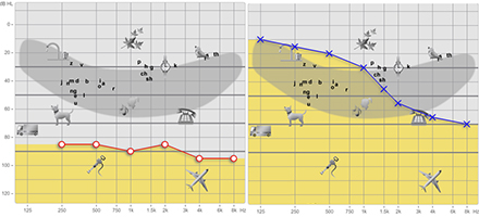 雙耳均適宜放大,但一側耳效果更好。如果單看每側耳都是可以選配的,但兩耳之間還是存在效果的差異。