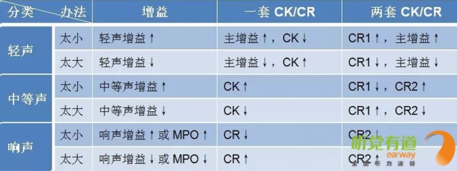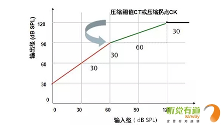 顧名思義,壓縮就是把超過一定強度的聲音減小至聽損患者縮小的殘余聽覺動態范圍里。相較于線性放大,壓縮可以有效達到“小聲聽得見,大聲受得了”的要求,尤其適用于感音神經性患者。</p><p> 壓縮參數主要有三個:壓縮拐點/壓縮閾值(CK/CT)、壓縮比(CR)與壓縮時間(起效時間AT,釋放時間RT)。下圖:橫坐標代表輸入級,即未經助聽器放大的聲音;縱坐標代表輸出級,即放大后的聲音。輸入與輸出的關系:輸出級=輸入級+增益,亦可表示:放大后的聲音=放大前的聲音+放大量。有了這個基礎,我們就可以清楚地理解這兩個參數的含義并進行調節。</p><p> 1、壓縮拐點(CK):線性放大與壓縮放大的臨界輸入級,此處為60 dB SPL,即輸入聲強度在60 dB SPL以下時為線性放大,超過60 dB SPL為壓縮放大。①紅線的輸入級范圍為0~60 dB,這段的聲音為線性放大,隨意找一個輸入級,用它對應的輸出級減去輸入級,得出線性放大的增益為30 dB;②當輸入級大于60 dB時,綠色曲線為壓縮放大,輸出與對應輸入的差值不再是30 dB,而是隨著輸入級增加,增益逐漸減小;③當輸出達到最大輸出限制時,輸出不再增大,保持在最大輸出限制位置。</p><p> </p><center><img alt="" src="/upfiles/201906120320158907.png" width="440" height="250" /></center><p></p><p> 2、壓縮比(CR):輸入級差值與輸出級差值的比值。上圖中線性狀態時壓縮比為1:1,可以找兩對數值,(輸入60-輸入0)/(輸出90-輸出30)=60/60=1:1。壓縮狀態時壓縮比為2:1,同樣可以找兩對數值,(輸入120-輸入60)/(輸出120-輸出90)=60/30=2:1。</p><p> 3、壓縮方式(CM):由于起效時間(AT)與釋放時間(RT)的不同組合構成不同的壓縮方式。</p><p> 助聽器由線性變換到壓縮時所需的穩定時間為起效時間。起效時間短,說明對大聲壓縮及時,不會造成聽力傷害;起效時間長,說明對大聲壓縮緩慢,有可能短暫感覺刺耳,但可以最大程度還原小聲與大聲的強度差異感。</p><p> 助聽器由壓縮回到線性時所需的穩定時間為釋放時間。釋放時間短,說明對小聲及時線性放大,避免小聲聽不見;釋放時間長,說明對小聲還在壓縮,放大不及時,有可能小聲聽不見,但可以最大程度還原大聲和小聲的強度差異感。</p><p> 我們可以做個比喻來了解壓縮的概念。假使你在高速路上,突然前方出現一個大大的警示牌,提示有事故發生,這時你需要迅速踩剎車以防撞擊。越早踩剎車相當于越早壓縮(壓縮拐點越小),剎車的力度越大相當于壓縮比越大,開始剎車至時速降至安全時速所需時間相當于起效時間,過了事故點踩油門,車速恢復至高速所需時間相當于釋放時間。</p><p> 壓縮是為了保護人們聽覺系統免受瞬間或持續中、大強度聲音的刺激,同時又能有效放大各種小聲的基本技術手段,可以使小聲、中等聲和大聲無一遺漏地進入聽障患者縮小的聽覺動態范圍中。</p><p> 恰當的壓縮拐點與壓縮比滿足了聽障患者達到“小聲聽得見、大聲受得了”的要求,而壓縮的起效時間與釋放時間設定需要考慮聽障患者個性化的聆聽喜好。</p><p> 起效時間與釋放時間都短,優點是小聲放大及時、大聲壓縮及時,即小聲聽得到大聲不覺吵,缺點是大小聲強度差異感不大;起效時間短釋放時間長,優點是大小聲強度差異感真實,音節間噪聲小,缺點是有可能小聲放大不足。</p><p> 事實上,各企業的助聽器軟件往往可以直接調節輕聲增益、中等聲增益、大聲增益與主增益而間接控制壓縮參數,有的軟件可見一套CK/CR,有的軟件可見兩套CK/CR。有些軟件會自動默認為自適應壓縮方式,能夠根據聲音強度差異自動調整。</p><p> 下圖匯總了對不同強度聲音不適的解決辦法,供大家參考。</p><p> </p><p><center><img alt="" src="/upfiles/201906120320202761.png" width="640" height="240" /></center><center><p style="text-align: left;"> 更多詳情請登錄聽覺有道助聽器www.letianwh.cn</p><br /></center></p>" />