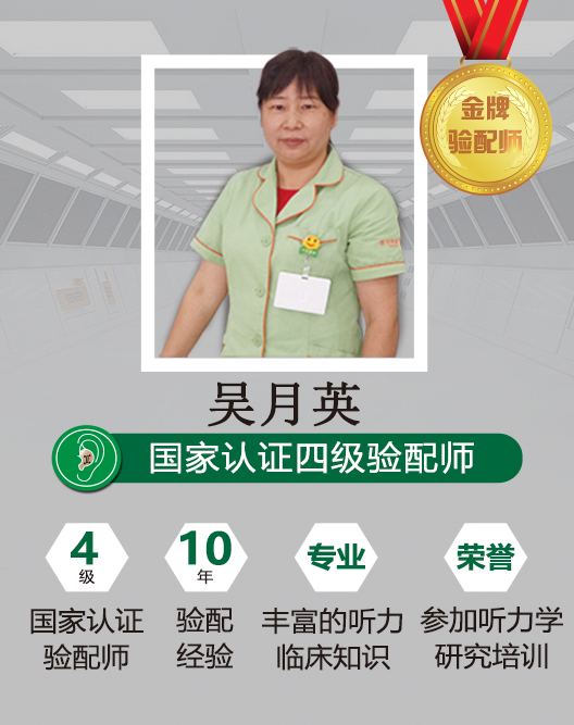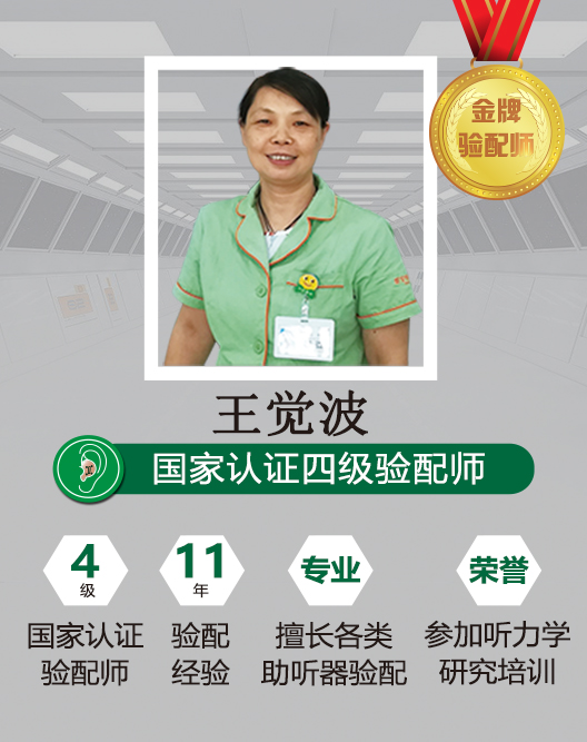 <span style="font-size:16px;"> 聽力有障礙,最有效地解決之道是佩戴合格的助聽器,想驗(yàn)配到最適合自己聽力情況的助聽器,最重要的是找到最專業(yè)的助聽器驗(yàn)配師。</span></p><p><span style="font-size:16px;"> 以下就讓我們介紹一下本期聽覺有道的眾多金牌級(jí)驗(yàn)配師!</span></p><p><span style="font-size:16px;"></span></p><p style="text-align: center;"><span style="font-size: 16px;"> <strong>柯艷</strong></span></p><p style="text-align: center;"><span style="font-size: 16px;"> 國(guó)家認(rèn)證三級(jí)驗(yàn)配師</span></p><p style="text-align: center;"><span style="font-size: 16px;"><img src="http://www.letianwh.cn/upfiles/201808210510452162.jpg" alt="" /><br /></span></p><p><span style="font-size: 16px;"> 從事助聽器驗(yàn)配行業(yè)20年,西門子、峰力、瑞聲達(dá)助聽器公司授權(quán)驗(yàn)配師,多次參加丹麥、瑞士、美國(guó)、德國(guó)等知名品牌助聽器公司的培訓(xùn)及各類專業(yè)交流,從業(yè)以來積累了豐富的實(shí)踐經(jīng)驗(yàn)。</span></p><p><span style="font-size: 16px;"> 擅長(zhǎng)全數(shù)字助聽器的調(diào)試與編程,為各類輕、中重度聽損患者提供專業(yè)的助聽器驗(yàn)配服務(wù),深得好評(píng)!</span></p><p><span style="font-size: 16px;"></span><hr /><br /></p><p style="text-align: center;"><span style="font-size:16px;"> <strong>王覺波</strong></span></p><p style="text-align: center;"><span style="font-size:16px;"> 國(guó)家認(rèn)證四級(jí)驗(yàn)配師</span></p><p style="text-align: center;"><span style="font-size:16px;"><img src="/upfiles/201808210509423583.jpg" alt="" /><br /></span></p><p><span style="font-size:16px;"> 從事聽力測(cè)試、助聽器醫(yī)學(xué)驗(yàn)配、調(diào)試及聽力康復(fù)工作11年;多次參加西門子聽力學(xué)研究與培訓(xùn)中心高級(jí)驗(yàn)配師培訓(xùn);具有豐富的聽力臨床知識(shí)、助聽器醫(yī)學(xué)驗(yàn)配經(jīng)驗(yàn)。</span></p><p><span style="font-size:16px;"> 聾兒、成人聽力咨詢及康復(fù)指導(dǎo)。</span></p><p><span style="font-size:16px;"></span><hr /><br /></p><p style="text-align: center;"><span style="font-size:16px;"> <strong>殷志紅</strong></span></p><p style="text-align: center;"><span style="font-size:16px;"> 國(guó)家認(rèn)證四級(jí)驗(yàn)配師</span></p><p style="text-align: center;"><span style="font-size:16px;"><img src="/upfiles/201808210509563300.jpg" alt="" /><br /></span></p><p><span style="font-size:16px;"> 從事助聽器醫(yī)學(xué)驗(yàn)配、調(diào)試及聽力康復(fù)工作12年;有豐富的聽力臨床知識(shí)、助聽器醫(yī)學(xué)驗(yàn)配經(jīng)驗(yàn);多次參加西門子聽力學(xué)研究與培訓(xùn)中心高級(jí)驗(yàn)配師培訓(xùn),能為聽力損失患者提供專業(yè)、細(xì)致的聽力解決方案。</span></p><p><span style="font-size:16px;"> 擅長(zhǎng)成人助聽器驗(yàn)配,兒童聽力檢測(cè)分析;真耳分析和聲場(chǎng)評(píng)估、聽力咨詢及康復(fù)指導(dǎo)等等。</span></p><p><span style="font-size:16px;"></span><hr /><br /></p><p style="text-align: center;"><span style="font-size:16px;"> <strong>吳月英</strong></span></p><p style="text-align: center;"><span style="font-size:16px;"> 國(guó)家認(rèn)證四級(jí)驗(yàn)配師</span></p><p style="text-align: center;"><span style="font-size:16px;"><img src="/upfiles/201808210510252836.jpg" alt="" /><br /></span></p><p><span style="font-size:16px;"> 從事助聽器醫(yī)學(xué)驗(yàn)配、調(diào)試及聽力康復(fù)工作10年,并通過國(guó)家四級(jí)助聽器驗(yàn)配師職業(yè)資格考核;曾多次參加西門子聽力學(xué)研究與培訓(xùn)中心高級(jí)驗(yàn)配師培訓(xùn)。</span></p><p><span style="font-size:16px;"> 擅長(zhǎng)聽力檢測(cè)分析,助聽器驗(yàn)配,聾兒;成人聽力咨詢及康復(fù)指導(dǎo)。</span></p><p><span style="font-size:16px;"></span><hr /><br /></p><p style="text-align: center;"><span style="font-size:16px;"> <strong>曾小春</strong></span></p><p style="text-align: center;"><span style="font-size:16px;"> 國(guó)家認(rèn)證三級(jí)驗(yàn)配師</span></p><p style="text-align: center;"><span style="font-size:16px;"><img src="/upfiles/201808210510354480.jpg" alt="" /><br /></span></p><p><span style="font-size:16px;"> 從業(yè)經(jīng)驗(yàn)10多年,積累了豐富的助聽器驗(yàn)配經(jīng)驗(yàn)。擅長(zhǎng)各種類型聽損的助聽器驗(yàn)配;擅長(zhǎng)各大品牌助聽器的精細(xì)調(diào)節(jié);擅長(zhǎng)助聽器驗(yàn)配后的聲場(chǎng)評(píng)估、言語測(cè)聽、真耳分析等效果評(píng)估方法。熟練掌握兒童聽力檢測(cè),兒童助聽器驗(yàn)配,兒童聽力評(píng)估和診斷,兒童助聽設(shè)備精準(zhǔn)調(diào)試,聽力康復(fù)和聽能管理等。</span></p><p><span style="font-size:16px;"></span><hr /><br /></p><p style="text-align: center;"><span style="font-size:16px;"> <strong>王蕾</strong></span></p><p style="text-align: center;"><span style="font-size:16px;"> 國(guó)家認(rèn)證四級(jí)驗(yàn)配師</span></p><p style="text-align: center;"><span style="font-size:16px;"><img src="/upfiles/201808210510569596.jpg" alt="" /><br /></span></p><p><span style="font-size:16px;"> 從事聽力測(cè)試、助聽器醫(yī)學(xué)驗(yàn)配、調(diào)試及聽力康復(fù)工作14年;現(xiàn)任聽覺有道培訓(xùn)部講師、聽覺有道成都南門中心店長(zhǎng)。</span></p><p><span style="font-size:16px;"> 曾參加北京301醫(yī)院臨床聽力學(xué)診斷培訓(xùn)、北京中國(guó)聾兒康復(fù)中心聾兒聽力康復(fù)培訓(x