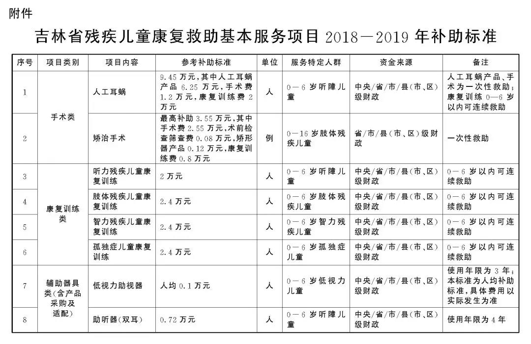 各市(州)人民政府,長白山管委會,長春新區(qū)管委會,各縣(市)人民政府,省政府各廳委辦、各直屬機構(gòu):</p><p> 為深入貫徹黨的十九大“發(fā)展殘疾人事業(yè),加強殘疾康復(fù)服務(wù)”的總體部署,全面落實《殘疾預(yù)防和殘疾人康復(fù)條例》和《國務(wù)院關(guān)于建立殘疾兒童康復(fù)救助制度的意見》(國發(fā)〔2018〕20號)精神,不斷改善殘疾兒童康復(fù)狀況,促進殘疾兒童全面發(fā)展,切實減輕殘疾兒童家庭負擔(dān),完善殘疾兒童康復(fù)救助社會保障體系,提出如下意見。</p><p> 一、總體要求</p><p> (一)指導(dǎo)思想。</p><p> 以習(xí)近平新時代中國特色社會主義思想為指導(dǎo),全面深入貫徹黨的十九大和十九屆二中、三中全會精神,認真落實黨中央、國務(wù)院決策部署,統(tǒng)籌推進“五位一體”總體布局和協(xié)調(diào)推進“四個全面”戰(zhàn)略布局,堅持以人民為中心的發(fā)展思想,牢固樹立新發(fā)展理念,按照兜底線、織密網(wǎng)、建機制的要求,著力保障殘疾兒童基本康復(fù)服務(wù)需求,努力實現(xiàn)殘疾兒童“人人享有康復(fù)服務(wù)”,使殘疾兒童家庭獲得感、幸福感、安全感更加充實、更有保障、更可持續(xù)。</p><p> (二)基本原則。</p><p> 堅持制度銜接、應(yīng)救盡救。加強與基本醫(yī)療、臨時救助等社會保障制度的有效銜接,確保殘疾兒童家庭求助有門、救助及時。</p><p> 堅持盡力而為、量力而行。堅守底線、突出重點、完善制度、引導(dǎo)預(yù)期,著力滿足殘疾兒童基本康復(fù)服務(wù)需求。</p><p> 堅持規(guī)范有序、公開公正。建立科學(xué)規(guī)范、便民高效的運行機制,主動接受群眾和社會監(jiān)督,做到公開透明、結(jié)果公正。</p><p> 堅持政府主導(dǎo)、社會參與。更好發(fā)揮政府“保基本”作用,不斷推進基本康復(fù)服務(wù)均等化;更好發(fā)揮社會力量作用,不斷擴大康復(fù)服務(wù)供給,提高康復(fù)服務(wù)質(zhì)量。</p><p> (三)總體目標。</p><p> 到2020年,建立與全面建成小康社會目標相適應(yīng)的殘疾兒童康復(fù)救助制度體系,形成黨委領(lǐng)導(dǎo)、政府主導(dǎo)、殘聯(lián)牽頭、部門配合、社會參與的殘疾兒童康復(fù)救助工作格局,基本實現(xiàn)殘疾兒童應(yīng)救盡救。</p><p> 到2025年,殘疾兒童康復(fù)救助制度體系更加健全完善,殘疾兒童康復(fù)服務(wù)供給能力顯著增強,服務(wù)質(zhì)量和保障水平明顯提高,殘疾兒童普遍享有基本康復(fù)服務(wù),健康成長、全面發(fā)展權(quán)益得到有效保障。</p><p> 二、制度內(nèi)容</p><p> (一)救助對象條件。</p><p> 救助對象應(yīng)同時具備以下條件:</p><p> 1.具有吉林省戶籍(或持有吉林省內(nèi)居住證),有康復(fù)需求的0-6歲視力、聽力、言語、肢體、智力等殘疾兒童和孤獨癥兒童。</p><p> 2.已辦理《中華人民共和國殘疾人證》,或持具有診斷資質(zhì)的縣級以上醫(yī)療機構(gòu)出具的醫(yī)學(xué)診斷的殘疾兒童。</p><p> (二)救助內(nèi)容和標準。</p><p> 救助內(nèi)容包括以減輕功能障礙、改善功能狀況、增強生活自理和社會參與能力為主要目的的手術(shù)、輔助器具配置和康復(fù)訓(xùn)練等。救助服務(wù)項目及補助標準依據(jù)年度《吉林省殘疾兒童康復(fù)救助基本服務(wù)項目補助標準》執(zhí)行。</p><p> 各市(州)、縣(市、區(qū))政府要依據(jù)本地財力狀況、保障對象數(shù)量、殘疾類別等,分類確定本地康復(fù)救助基本服務(wù)項目的經(jīng)費補助標準,可在省確定的項目和標準基礎(chǔ)上,根據(jù)本地實際增加殘疾兒童康復(fù)救助基本服務(wù)項目,擴大殘疾兒童康復(fù)救助的年齡范圍,并建立項目和標準的動態(tài)調(diào)整機制。</p><p> (三)工作流程。</p><p> 申請。殘疾兒童監(jiān)護人向殘疾兒童戶籍所在地(居住證發(fā)放地)縣級殘聯(lián)提出申請。監(jiān)護人也可委托他人、社會組織、社會救助經(jīng)辦機構(gòu)等代為申請。兒童福利機構(gòu)收留撫養(yǎng)的殘疾兒童由其所在兒童福利機構(gòu)代為申請。</p><p> 審核。縣級殘聯(lián)負責(zé)對殘疾兒童救助申請進行審核。</p><p> 救助。殘疾兒童康復(fù)救助由定點康復(fù)機構(gòu)負責(zé)組織實施。定點康復(fù)機構(gòu)由省殘聯(lián)會同省衛(wèi)生健康、教育、民政等部門進行評審,符合條件的確定為定點康復(fù)機構(gòu),并向社會公開,經(jīng)審核符合條件的殘疾兒童,可在戶籍所在地或居住地自主選擇定點康復(fù)機構(gòu)。定點康復(fù)機構(gòu)須對殘疾兒童進行康復(fù)評估,并根據(jù)評估結(jié)果制定康復(fù)計劃。必要時,由上一級殘聯(lián)組織和衛(wèi)生健康等部門指定的醫(yī)療、康復(fù)機構(gòu)做進一步診斷和康復(fù)需求評估。</p><p> 結(jié)算。殘疾兒童在定點康復(fù)機構(gòu)接受康復(fù)救助服務(wù)發(fā)生的費用,經(jīng)縣級殘聯(lián)審核后,由同級財政部門與定點康復(fù)機構(gòu)直接結(jié)算,結(jié)算周期由縣級殘聯(lián)商同級財政部門確定。</p><p> 殘疾兒童殘疾診斷、康復(fù)救助項目屬于基本醫(yī)療保險保障范圍的,由醫(yī)保部門按相關(guān)規(guī)定給予報銷;屬于醫(yī)療救助等臨時救助范圍的,由業(yè)務(wù)主管部門按規(guī)定給予救助。</p><p> (四)經(jīng)費保障