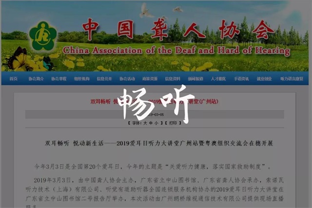 <img src="/upfiles/201903081141467927.jpg" alt="" /><br /></p><p> 3月3日,聽覺有道聯合中國聾協、全國各地聾協等單位,同步在廣州、深圳、成都、青島、淄博等地,舉辦以“雙耳暢聽,悅動新生活”為主題的聽力大講堂活動。</p><p> 這系列的活動,得到了多方關注。我們來看一下,別人筆下的聽覺有道,是怎么樣的。</p><p> 聽覺有道在青島</p><p style="text-align: center;"><a href="http://www.zglx.org.cn/xhhd/201903/t20190305_647913.html" target="_blank"><img src="/upfiles/201903081142369355.jpg" alt="" /></a><br /></p><p style="text-align: center;"> △點擊圖片,可查看山東聾協報道</p><p> 由聽覺有道、青島市殘聯、市圖書館、市聾協聯合主辦的聽力大講堂,在青島市圖書館開講,向市民們宣傳“愛耳日”知識及相關政策。</p><p> 借助大屏幕導引,聽覺有道驗配師引導現場的聾人朋友進行了一場耳保健操活動,及提供進口高端耳窺鏡耳道檢查等各項聽力服務。</p><p style="text-align: center;"><img src="/upfiles/201903081143073292.jpg" alt="" /><br /></p><p> 聽覺有道副總裁接受電視臺采訪時,說了這番話。</p><p> “小朋友給大家表演了一些聽、說、唱方面的一些表演,這個在十年前是難以想象的。這些小朋友就是通過國家的救助,能夠植入人工耳蝸,無論是科技的手段,還是國家政府的支持,我覺得這是我們小朋友的福音。”</p><p> 聽覺有道在四川</p><p style="text-align: center;"><a href="http://www.zglx.org.cn/xhhd/201903/t20190304_647630.html" target="_blank"><img src="/upfiles/201903081142519529.jpg" alt="" /></a><br /></p><p style="text-align: center;"> △點擊圖片,可查看四川聾協報道</p><p> 3月3日上午,在四川省圖書館第二學術報告廳,舉辦了“愛耳日”宣傳活動,全省共有200余名聽力殘疾人及家屬參加了活動。</p><p> 活動暖場,聽覺有道帶大家一起做耳保健操。通過耳保健操,可促進氣血運行,起到預防疾病、增壽的作用。</p><p style="text-align: center;"><a href="http://www.letianwh.cn/newsDetail-102705.html" target="_blank"><img src="/upfiles/201903081144332387.jpg" alt="" /></a><br /></p><p style="text-align: center;"> △點擊圖片,學習聽覺有道耳保健操</p><p> 聽覺有道在廣州</p><p style="text-align: center;"><a href="http://www.zglx.org.cn/xhhd/201903/t20190305_647918.html" target="_blank"><img src="/upfiles/20190308114443784.jpg" alt="" /></a><br /></p><p style="text-align: center;"> △點擊圖片,查看廣東聾協報道</p><p> 曖場保健環節,讓大家體驗一番聽覺保健,通過刺激耳朵的血管經絡,激發身體的潛能,調整臟腑機能,改善健康狀態,能有效止住許多病痛,達到保護聽覺,健身強體、延年益壽的目的。</p><p> 相關活動贊助方向現場參與的聽障朋友免費贈送助聽器電池、提供助聽器保養等貼心服務,助力聽障朋友暢聽無礙。</p><p style="text-align: center;"><img src="/upfiles/201903081144523292.jpg" alt="" /><br /></p><p style="text-align: center;"> △中國聾協相關報道</p><p> 聽覺有道在深圳</p><p style="text-align: center;"><img src="/upfiles/201903081145172245.jpg" alt="" /><br /></p><p> 來自聽覺有道、早期干預中心、北大深圳醫院、深圳市中醫院、華大基因等單位的約30位醫生、專業人員,十多個展臺,為現場聽障人士提供了聽力知識科普、基因預防科普、人工耳蝸、助聽器驗配知識科普、遺傳性耳聾的基因診斷、孕前干預、耳科手術等相關的醫學咨詢、高清窺鏡耳道檢查、助聽設備保養等服務。</p>" />