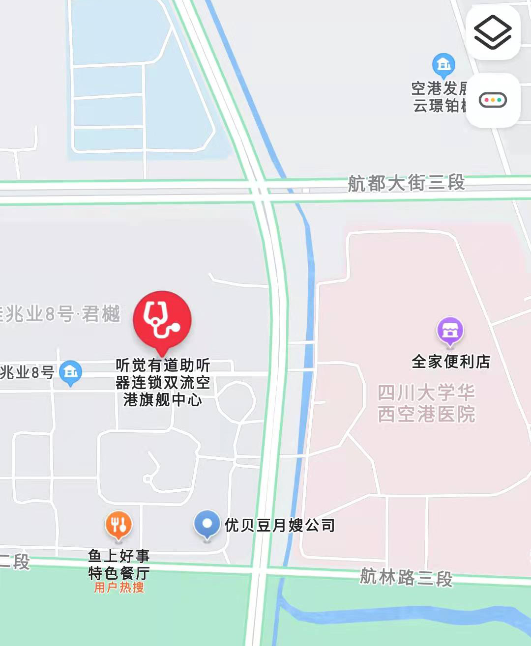 <span style="font-size:16px;"> 聽覺有道全國聽力連鎖雙流空港旗艦中心</span></div><div style="text-align: center;"><span style="font-size:16px;"><br /></span></div><div style="text-align: center;"><span style="font-size:16px;"> 正式營業(yè)啦!</span></div><div style="text-align: center;"><span style="font-size:16px;"><br /></span></div><div style="text-align: center;"><span style="font-size:16px;"><img src="/upfiles/202112240433043799.jpg" width="640" alt="" /><br /></span></div><div style="text-align: center;"><span style="font-size:16px;"><br /></span></div><div style="text-align: center;"><span style="font-size:16px;"> 歡迎新老用戶到店咨詢</span></div><div style="text-align: center;"><span style="font-size:16px;"><br /></span></div><div style="text-align: center;"><span style="font-size:16px;"> 檢測聽力,驗配、清潔保養(yǎng)助聽器</span></div><div style="text-align: center;"><span style="font-size:16px;"><br /></span></div><div style="text-align: center;"><span style="font-size:16px;"> 全國服務熱線</span></div><div style="text-align: center;"><span style="font-size:16px;"> 400 690 1828</span></div><div style="text-align: center;"><span style="font-size:16px;"><br /></span></div><div style="text-align: center;"><span style="font-size:16px;"> 門店電話</span></div><div style="text-align: center;"><span style="font-size:16px;"> 028-68485778</span></div><div style="text-align: center;"><span style="font-size:16px;"><br /></span></div><div style="text-align: center;"><span style="font-size:16px;"> 手機(微信同號)</span></div><div style="text-align: center;"><span style="font-size:16px;"> 17380530151</span></div><div style="text-align: center;"><span style="font-size:16px;"><br /></span></div><div style="text-align: center;"><span style="font-size:16px;"> 四川省成都市雙流區(qū)東升鎮(zhèn)佳居路89號(雙流空港醫(yī)院正對面)</span></div><div style="text-align: center;"><span style="font-size:16px;"><br /></span></div><div style="text-align: center;"><span style="font-size:16px;"><img src="/upfiles/202112240433297719.jpg" width="640" alt="" /><br /></span></div><div style="text-align: center;"><span style="font-size:16px;"><br /></span></div><div style="text-align: center;"><span style="font-size:16px;"> 乘坐801、803、502、563路公交,“雙流空港醫(yī)院站”下</span></div><div style="text-align: center;"><span style="font-size:16px;"><br /></span></div><div style="text-align: center;"><span style="font-size:16px;"> 歡迎蒞臨到店</span></div><div style="text-align: center;"><span style="font-size:16px;"><br /></span></div><div style="text-align: center;"><span style="font-size:16px;"> 專業(yè)驗配師</span></div><div style="text-align: center;"><span style="font-size:16px;"><br /></span></div><div style="text-align: center;"><span style="font-size:16px;"> 知名品牌助聽器</span></div><div style="text-align: center;"><span style="font-size:16px;"><br /></span></div><div style="text-align: center;"><span style="font-size:16px;"> 十大免費服務項目</span></div><div style="text-align: center;"><span style="font-size:16px;"><br /></span></div><div style="text-align: center;"><span style="font-size:16px;"> 近30年行業(yè)經(jīng)驗,門店覆蓋百余城市</span></div>" />